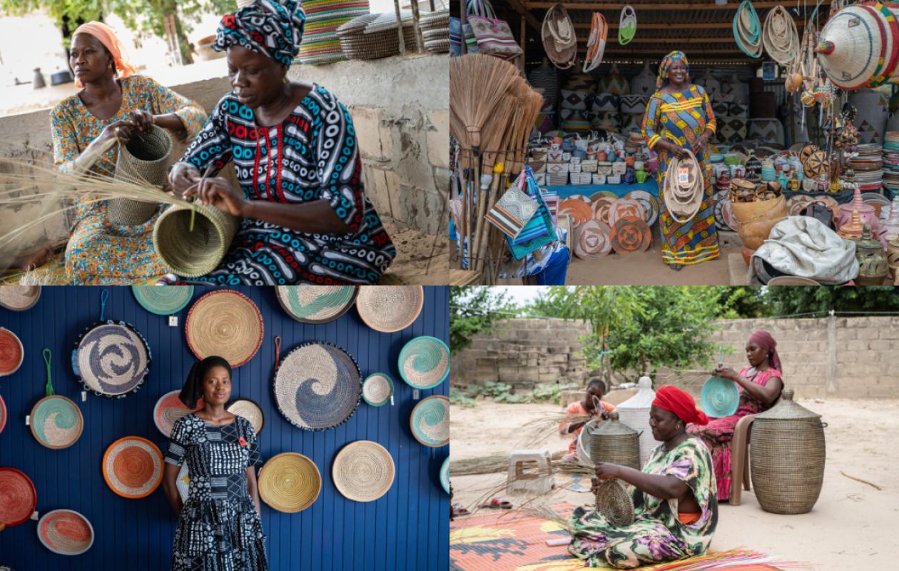 Adama Fall, veuve de 49 ans, parvient à faire vivre sa famille comme coordinatrice pour Imadi et en tressant de grands paniers.